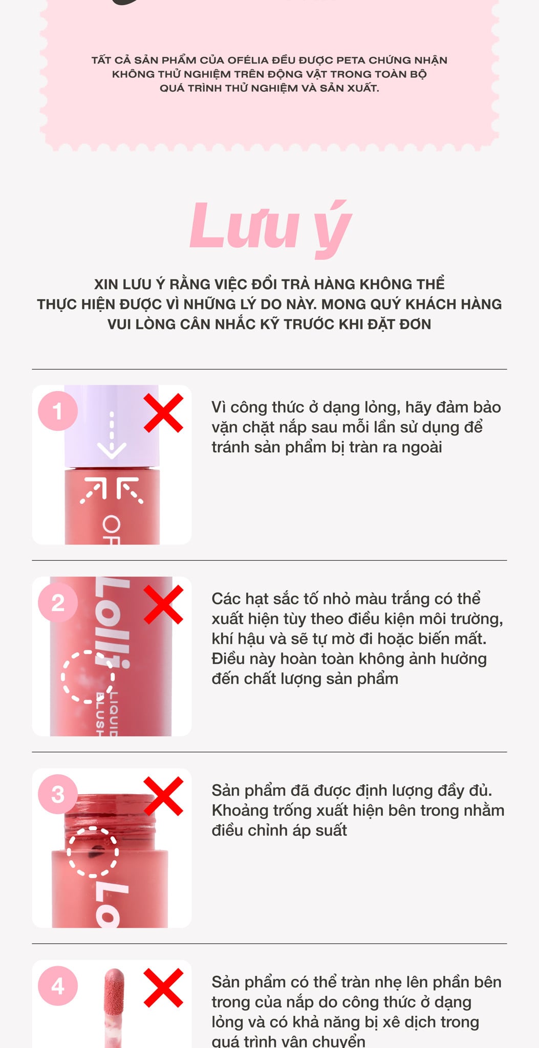 DC&C Group, OFÉLIA và SUGARPLUM không chịu trách nhiệm cho bất kỳ phản ứng cá nhân nào đối với bất kỳ thành phần cụ thể nào. Mô tả sản phẩm trên trang web và mọi kênh truyền thông của chúng tôi bao gồm danh sách đầy đủ các thành phần. Những người có nhạy cảm hoặc dị ứng với bất kỳ thành phần nào được liệt kê không nên sử dụng sản phẩm. Trong trường hợp bạn nghi ngờ hoặc có làn da nhạy cảm, luôn thử nghiệm dị ứng trên một vùng nha nhỏ và nếu bất cứ lúc nào xảy ra kích ứng, ngưng sử dụng sản phẩm.