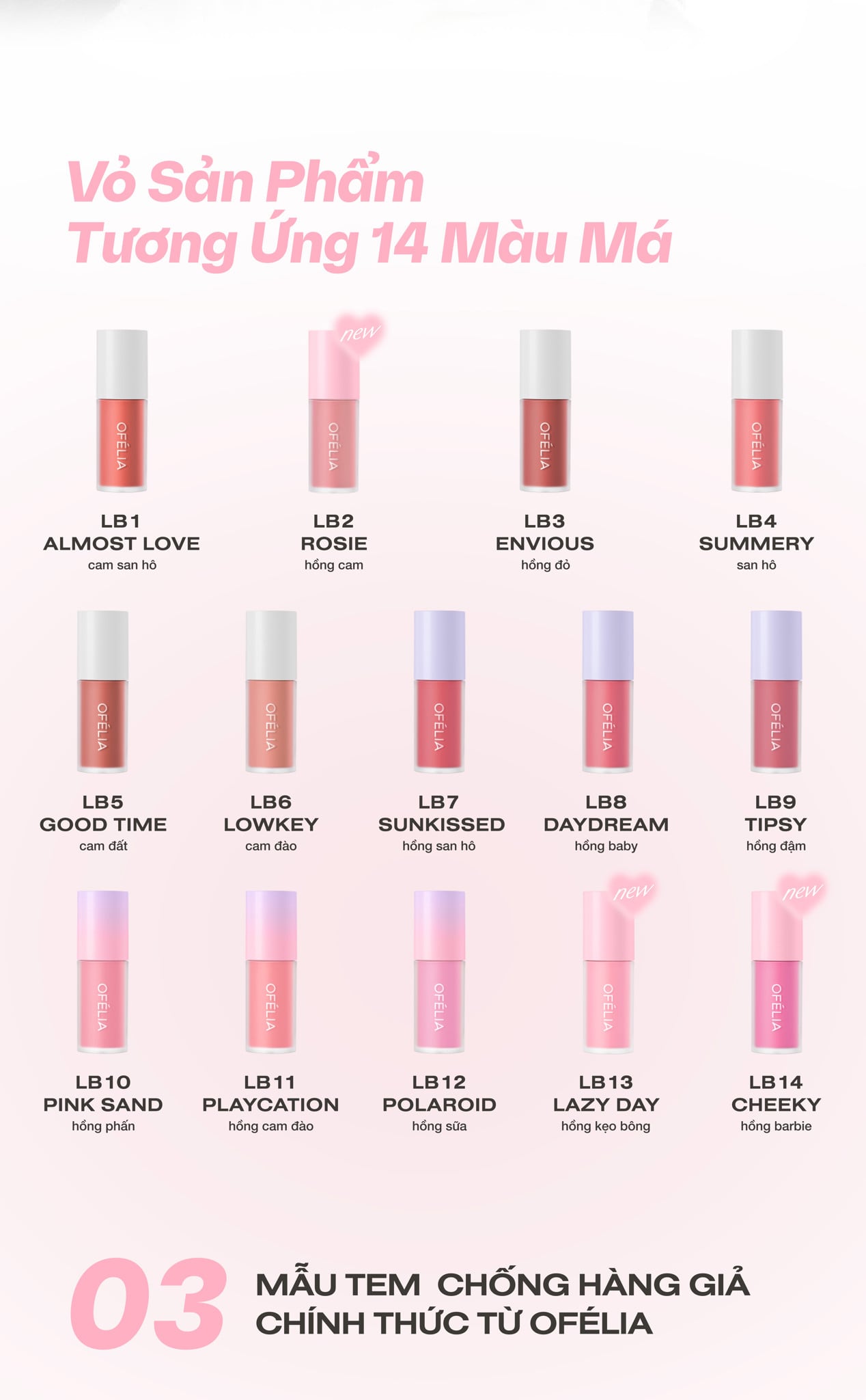 • LB2 Rosie: hồng phớt - Blushing Pink