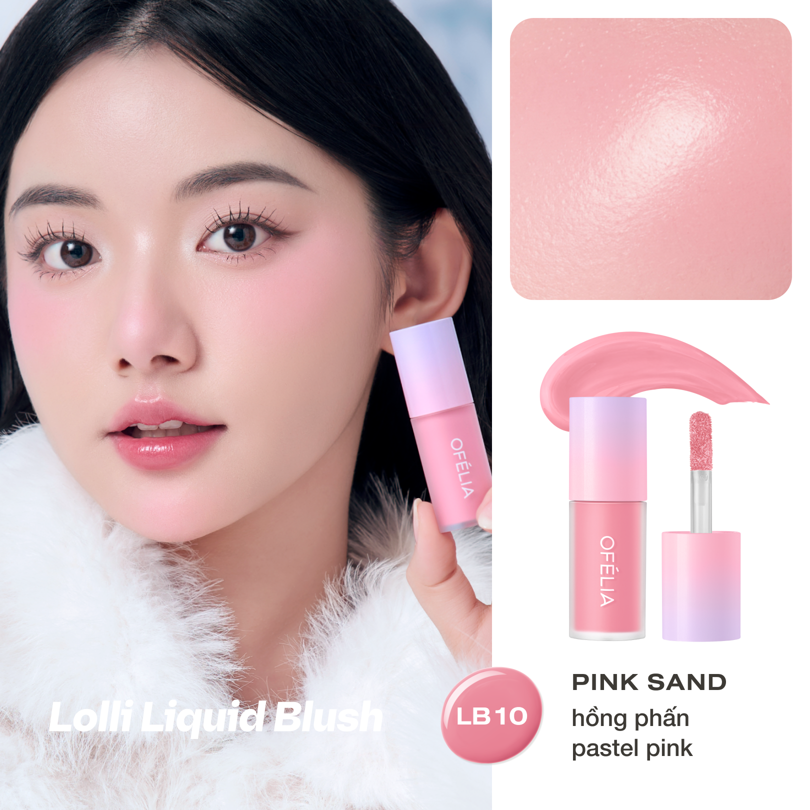 OFÉLIA Lolli Liquid Blush là má hồng có kết cấu dạng kem lỏng, nhẹ và mềm mịn, tạo hiệu ứng trong trẻo cho làn da. Kết cấu nhẹ và lên màu đều, dễ dàng sử dụng, giàu sắc tố và bám vào da tự nhiên, độ bền màu lên đến 12 giờ. Khả năng dưỡng ẩm cao, màu sắc tiệp vào da, cho làn da luôn căng bóng.